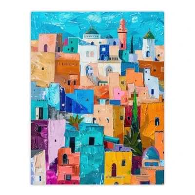 Artery8 Quirky Morocco Cityscape Oil Painting Colourful Living Room Extra Large XL Wall Art Poster Print