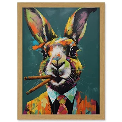 Artery8 Rabbit with Cheroot Cigars Wearing Suit Modern Artwork Framed A3 Wall Art Print