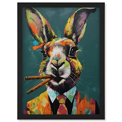 Artery8 Rabbit with Cheroot Cigars Wearing Suit Modern Artwork Framed Wall Art Print A4