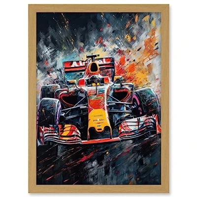 Artery8 Race Car Driver Racing Action Shot Painting Artwork Framed A3 Wall Art Print