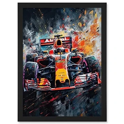 Artery8 Race Car Driver Racing Action Shot Painting Artwork Framed Wall Art Print A4