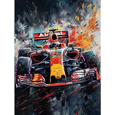 Artery8 Race Car Driver Racing Action Shot Painting Large Wall Art Poster Print Thick Paper 18X24 Inch