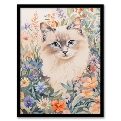 Artery8 Ragdoll Cat Lover Floral Pet Portrait Watercolour Living Room Artwork Framed Wall Art Print A4