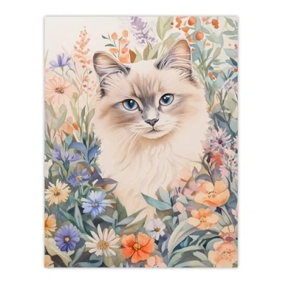 Artery8 Ragdoll Cat Lover Floral Pet Portrait Watercolour Living Room Large Wall Art Poster Print Thick Paper 18X24 Inch