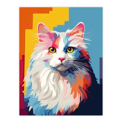 Artery8 Ragdoll Cat Lover Gift Pet Portrait Orange Blue Purple Artwork Painting Extra Large XL Wall Art Poster Print