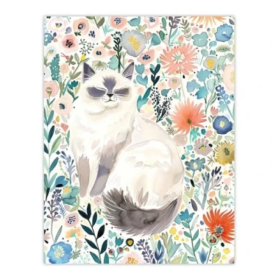 Artery8 Ragdoll Cat Lover Pet and Watercolour Wildflowers Living Room Extra Large XL Wall Art Poster Print