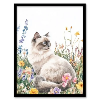 Artery8 Ragdoll Cat Lover Pet Wildflower Floral Portrait Living Room Artwork Framed Wall Art Print A4