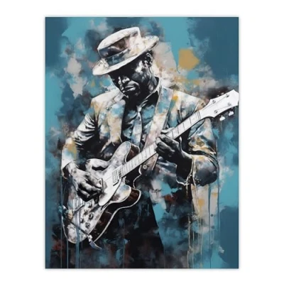Artery8 Ragtime Blues Watercolour Artwork Musician Playing Electric Guitar Portrait Painting Large Wall Art Poster Print Thick Paper 18X24 Inch