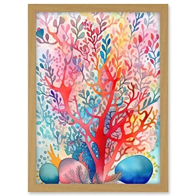 Artery8 Rainbow Coral Folk Art Watercolour Painting Artwork Framed A3 Wall Print
