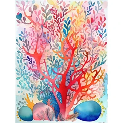 Artery8 Rainbow Coral Folk Art Watercolour Painting Extra Large XL Wall Poster Print