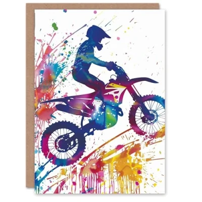 Artery8 Rainbow Paint Splat Dirtbike Sport Motorcycle For Him Man Birthday Card