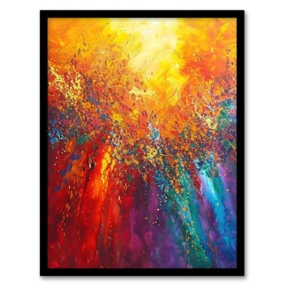 Artery8 Rainbow Sunrise Sunset Wave Abstract Painting Living Room Artwork Framed Wall Art Print A4