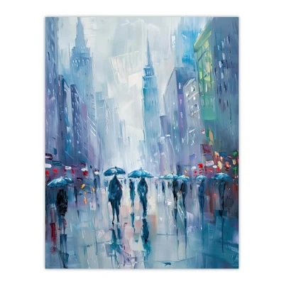 Artery8 Rainy New York Abstract Cityscape Oil Painting Living Room Large Wall Art Poster Print Thick Paper 18X24 Inch