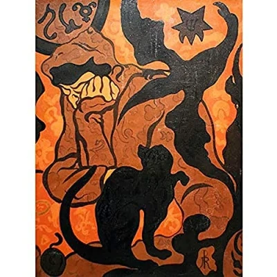 Artery8 Ranson Sorceror Black Cat Painting Art Print Canvas Premium Wall Decor Poster Mural