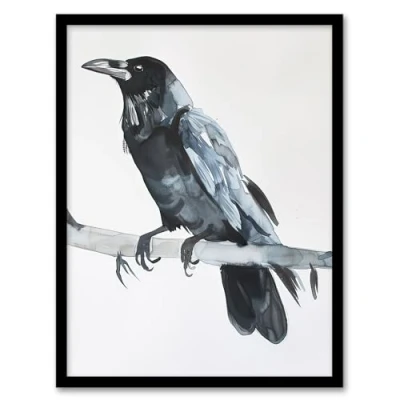 Artery8 Raven Bird on Tree Branch Bright Watercolour Living Room Artwork Framed Wall Art Print A4