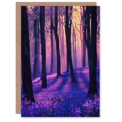 Artery8 Realistic Purple Bluebell Forest Artwork Dawn Sun Greeting Birthday Card Him Her All Blank