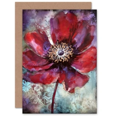 Artery8 Red Anemone Flower Bloom for Wife Her Mum Sister Daughter Mom Gran Nan Birthday Thank You Mothers Day Blank Art Greeting Card