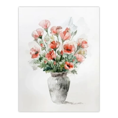 Artery8 Red Anemone Flower Bouquet in Vase Watercolour For Living Room Extra Large XL Wall Art Poster Print