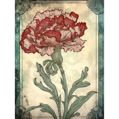 Artery8 Red Carnation Flower Bloom Watercolour Art Nouveau Extra Large XL Wall Poster Print