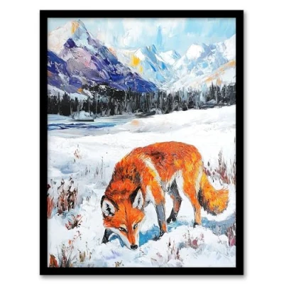 Artery8 Red Fox in Snowy Mountain Winter Landscape Living Room Artwork Framed Wall Art Print A4