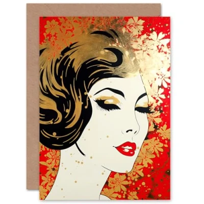 Artery8 Red Gold Art Nouveau 1920s for Wife Her Mum Sister Daughter Mom Gran Nan Birthday Thank You Mothers Day Blank Greeting Card