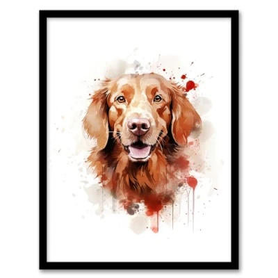 Artery8 Red Golden Retriever Lovers Gift Watercolour Pet Portrait Painting Artwork Framed Wall Art Print A4