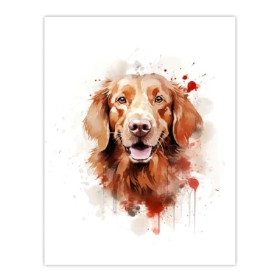 Artery8 Red Golden Retriever Lovers Gift Watercolour Pet Portrait Painting Artwork Large Wall Art Poster Print Thick Paper 18X24 Inch
