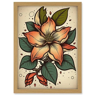 Artery8 Red Jasmine Old School USA Tattoo Ink Body Art Rockabilly Americana 50s Artwork Framed A3 Wall Print