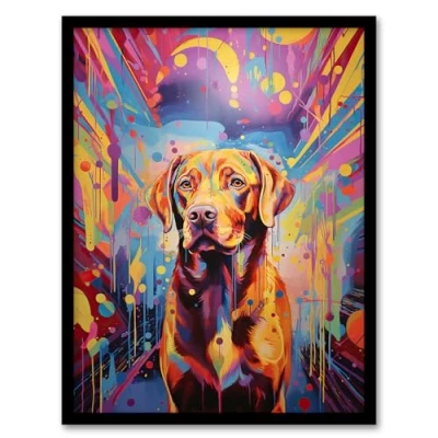 Artery8 Red Labrador Retriever Dog Lover Gift Pet Portrait Colourful Neon Artwork Painting Framed Wall Art Print A4