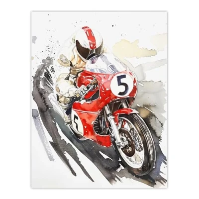 Artery8 Red Motorcycle Race Sport Event Watercolour Man Cave Extra Large XL Wall Art Poster Print