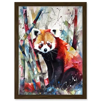 Artery8 Red Panda In Bamboo Forest Folk Art Artwork Framed A3 Wall Print