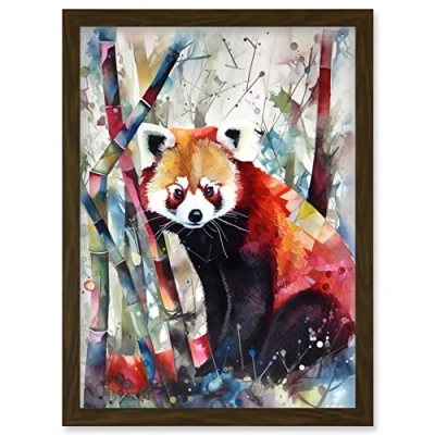 Artery8 Red Panda In Bamboo Forest Folk Art Artwork Framed Wall Print A4