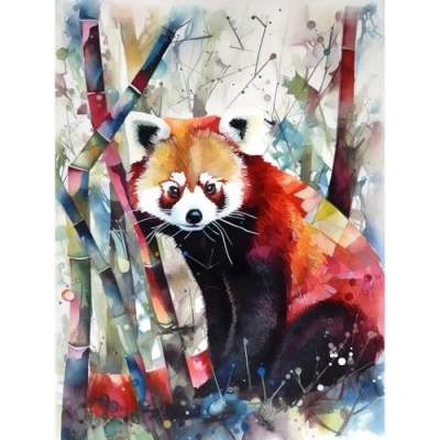 Artery8 Red Panda In Bamboo Forest Folk Art Extra Large XL Wall Poster Print
