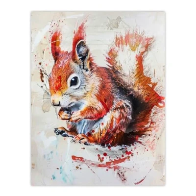 Artery8 Red Squirrel Painting Cute Woodland Animal Nature Living Room Large Wall Art Poster Print Thick Paper 18X24 Inch