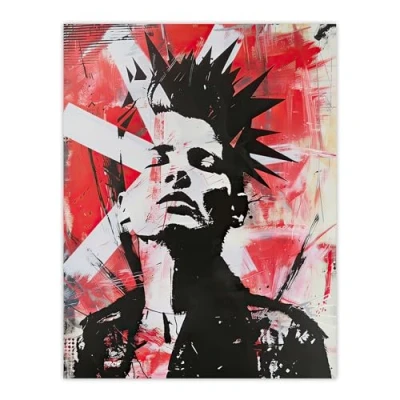 Artery8 Red White Punk Portrait Street Art Mohawk Bold Living Room Large Wall Poster Print Thick Paper 18X24 Inch