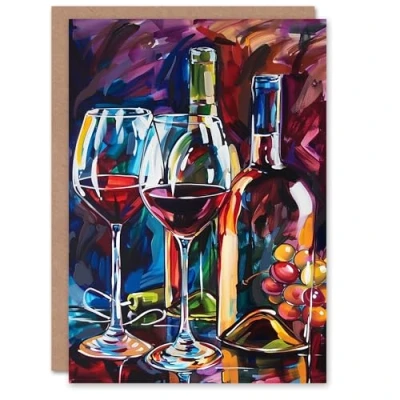 Artery8 Red Wine Lover Glasses Bottles Still Life Blank For Him Or Her Art Birthday Card