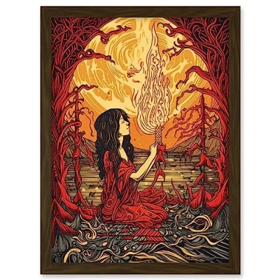 Artery8 Red Witch Concept Art Fire Priestess Nouveau Artwork Framed A3 Wall Print