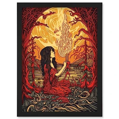 Artery8 Red Witch Concept Art Fire Priestess Nouveau Artwork Framed Wall Print A4