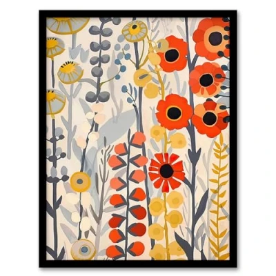 Artery8 Red Yellow Wildflowers Painting Rustic Floral Living Room Artwork Framed Wall Art Print A4