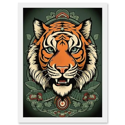 Artery8 Regal Tiger Head Old School USA Tattoo Ink Body Rockabilly Americana 50s Artwork Framed A3 Wall Art Print
