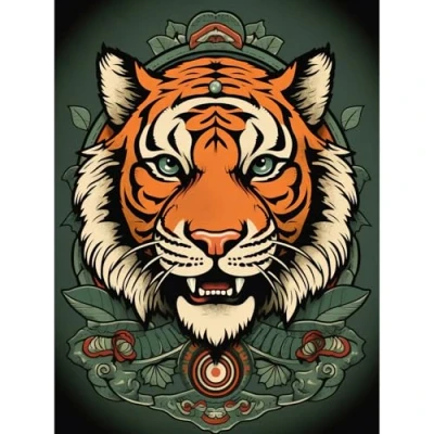 Artery8 Regal Tiger Head Old School USA Tattoo Ink Body Rockabilly Americana 50s Extra Large XL Wall Art Poster Print