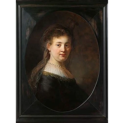 Artery8 Rembrandt Young Woman In Fantasy Costume Painting Art Print Canvas Premium Wall Decor Poster Mural