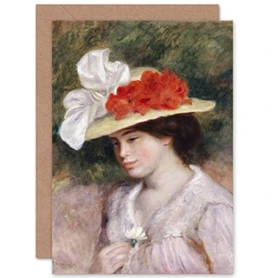 Artery8 Renoir Woman In A Flowered Hat Fine Art Greeting Card Plus Envelope Blank Inside