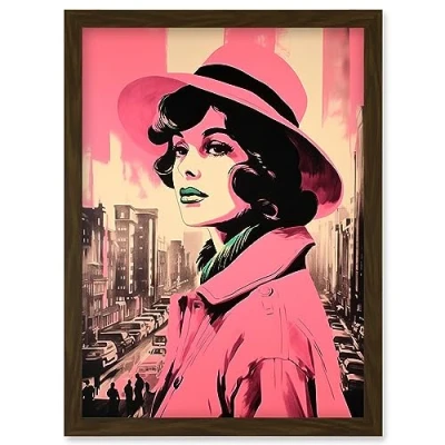Artery8 Retro Aesthetic Vintage Fashion Pink Cityscape Artwork Framed Wall Art Print A4