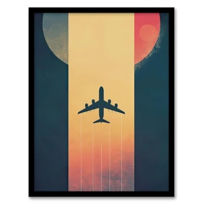 Artery8 Retro Futurism Travel Design Planet Aeroplane Living Room Artwork Framed Wall Art Print A4