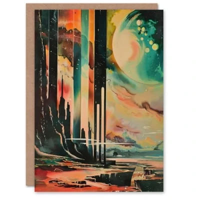 Artery8 Retro Sci Fi Cliff by Moon Artwork Galaxy Fantasy Greeting Birthday Card Him Her All Blank
