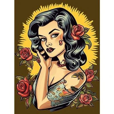 Artery8 Retro Tattoo Ink Body Art Pin Up Girl Roses Sun Rockabilly Americana 50s Large Wall Poster Print Thick Paper 18X24 Inch