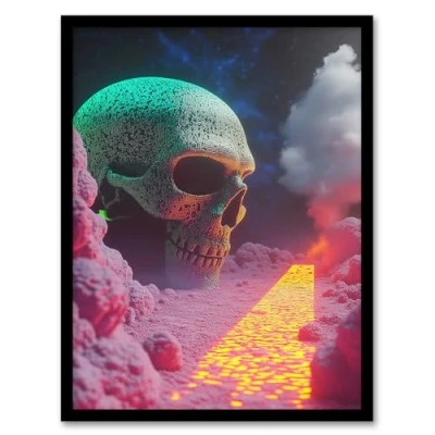 Artery8 Retrofuturism Surreal Villain Skeleton Head Lair Living Room Artwork Framed Wall Art Print A4
