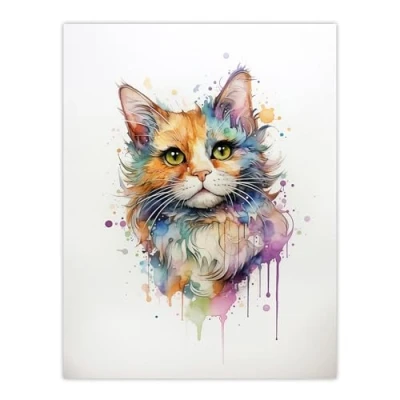 Artery8 Reverse Calico Cat Lovers Gift Watercolour Pet Portrait Painting Artwork Large Wall Art Poster Print Thick Paper 18X24 Inch