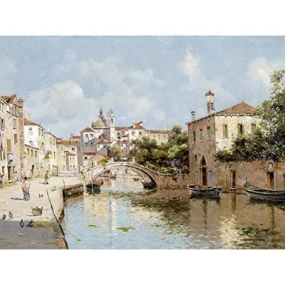 Artery8 Reyna Manescau Venetian Canal Landscape Painting Large Wall Art Poster Print Thick Paper 18X24 Inch